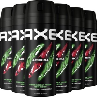 AXE Africa Deodorant Bodyspray - 6 x 150 ml - Voordeelverpakking - Antitranspiratie
