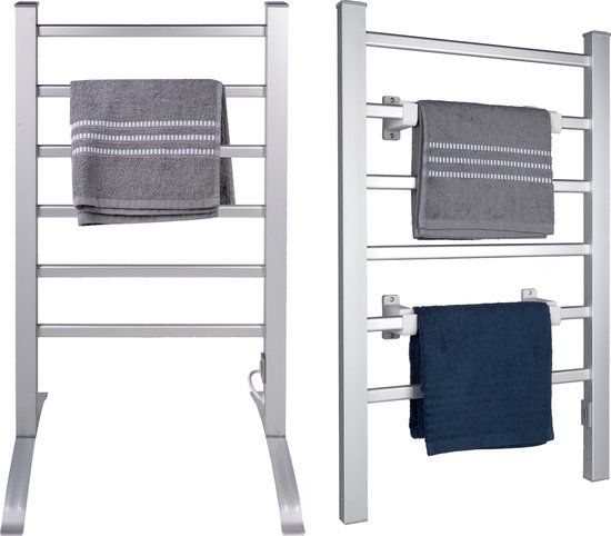 Bekijk productDirt Devil Elektrisch Handdoekenrek - 6 Stangen - Vrijstaand of Wandmontage - Aluminium - Grijs - Overige droogrekken