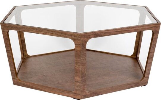 Dutchbone Sita Salontafel Zeshoekig Glas/ Hout Bruin - Retro & Vintage