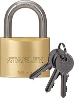 De Stanley ® 50 mm hangslot van massief messing is voorzien van een beugel van gehard staal, die automatisch vergrendelt. Het dubbele vergrendelingsmechanisme van dit hangslot biedt extra veiligheid. De behuizing voor hangslot is voorzien van antipick-up pennen en roestvrije veren. Dit hangslot met standaardbeugel is geschikt voor het sluiten van hekken, garages, schuren, vallen en kettingen.