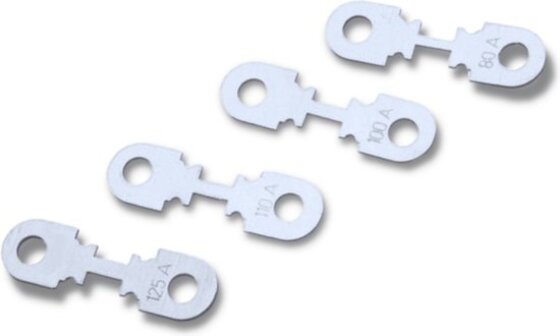 Deze 8-vormige smeltstrookzekering voldoet aan VAG standaarden en is opgebouwd van zink, door de ronde montagepunten kan de zekering eenvoudig worden bevestigd en is het zeer eenvoudig om te zien of de zekering nog heel is. De M6 aansluitingsgaten zitten op 30mm afstand van elkaar, deze smeltzekering is bestemd voor maximaal 32V en voor 40A.