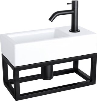 Bekijk productDiffernz Ravo Fonteinset - 38.5x18.5cm - Wit - Mat Zwart - Gebogen Kraan - Handdoekrek - Fonteinen