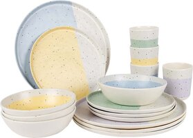 Breng stijl en kleur naar de tafel met deze vrolijke en stijlvolle melamine tableware set uit de pastel collectie. De set is praktisch, lichtgewicht en vrijwel onbreekbaar, perfect voor onderweg of thuis. Dankzij de krasbestendige en vaatwasmachinebestendige eigenschappen is deze set ideaal voor dagelijks gebruik. Geschikt voor 4 personen en perfect te mixen en matchen!