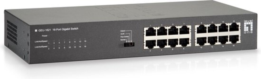 De LevelOne 16-Port Gigabit Switch is een netwerk-switch die zich kenmerkt door zijn robuuste prestaties en brede gebruiksmogelijkheden. Met een afmeting van 4 x 28 x 18 cm en een gewicht van 2600 gram, is deze compact ontworpen switch eenvoudig te integreren in elke netwerkomgeving. De switch beschikt over 16 Gigabit-ethernetpoorten die hoge datasnelheden ondersteunen conform de IEEE 802.3-standaard. Hiermee is betrouwbare en vlotte dataoverdracht gegarandeerd, ongeacht de grootte en de aard van de bestanden die je wilt verzenden of ontvangen. De operationele temperatuur ligt tussen 0 en 40° C en het AC input voltage varieert tussen 100 - 240 volt, wat een flexibele en stabiele werking garandeert. Bij aankoop van de LevelOne 16-Port Gigabit Switch ontvang je tevens een AC-kabel en een handige snelstartgids om de installatie en het gebruik te vereenvoudigen. Door het LED-indicatielampje zie je in één oogopslag de operationele status van de switch. Met een grijze kleurstelling past deze switch naadloos in elk interieur. Deze switch is ontworpen voor een operationele relatieve luchtvochtigheid tussen 10 en 90%. De LevelOne 16-Port Gigabit Switch maakt dus niet alleen indruk met zijn technische prestaties, maar ook met zijn elegantie en gebruiksvriendelijkheid.