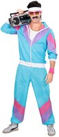 Dit foute jaren 80 trainingspak bestaat uit een vest met rits en een trainingsbroek (excl. hoofdband, bril, snor, ketting, ghetto blaster, zweetbandje en schoenen). De broek en het vest zijn wit, turquoise en roze van kleur. Dit 80's kostuum is perfect voor een 'fout is goud' feestje of voor carnaval. Let op, dit artikel valt klein.