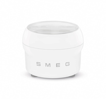 Ice cream maker accessory Suitable for Ice cream, sorbet and frozen yoghurt. This accessory has cold accumulating double wall cooling system. 1.1 Lt/ 1.2 Qt / 37 oz stainless steel internal container contains ingredients up to 700 gr / 1 lb. Transparent lid included. Ice Cream Maker accessories fit ONLY on SMEG stand mixer with inox bowl SMB401.