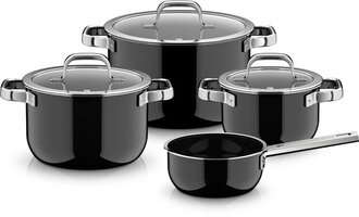 De pannenset uit de Mineral Pro collectie van WMF is ideaal voor het koken van groenten, sudderen van stoofgerechten en maken van heerlijke soepen. De WMF Fusiontec 2.0 Mineral Pro Pannenset 4 delig is gemaakt van slijtvast Fusiontec materiaal waarin 20 natuurlijke mineralen samenkomen. Dit vormt een extra sterke laag die zorgt voor een lange levensduur. De pannen zijn krasbestendig en kunnen gewoon in de vaatwasser. Dankzij het uitstekende warmtebehoud blijven smaken beter behouden en krijgen jouw gerechten meer diepte. Ook het design valt op door de mooie glanzende of metallic uitstraling.