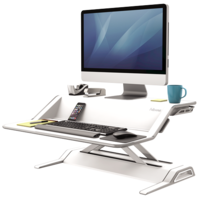 - The Lotus™ Sit-Stand Workstation makes it effortless to add movement to your workday for improved wellness\n- Patent-pending Smooth Lift Technology™ keeps your workstation stable and makes changing positions effortless\n- Features 22 different height settings and 17” of vertical adjustment so you can work in a position that’s perfect for you\n- Innovative cord management and device charging slot allow your entire workspace to move freely with you\n- Arrives fully assembled - no complicated instructions, no mounting, just unpack and get started\n- Compatible with Fellowes® Lotus™ Monitor Arm Kits\n- BIFMA Tested; Holds up to 35 lbs.
