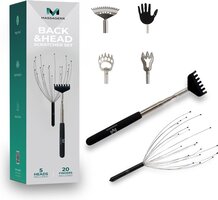 Ben jij op zoek naar het ultieme krabgevoel dat je rug, nek, hoofd en baard tot in de puntjes masseert? Zoek dan niet verder! De Massagerr Hoofd & Rug Krabber Set biedt de perfecte oplossing met zijn unieke 5-in-1-ruggenkrabber en hoofdkrabber met 20 vingers.