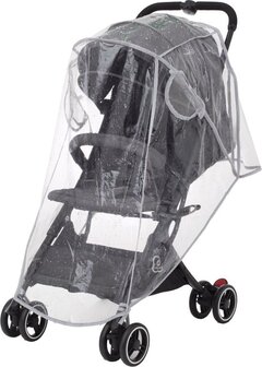 Je kindje kan heerlijk droog in de buggy zitten dankzij de universele regenhoes van Babygo! De transparante regenhoes is universeel en past op de meeste buggy's. Je bevestigt de hoes makkelijk aan de poten van de buggy.