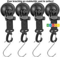 Veilig vasthouden Elke campingzuignap kan tot 12,5 kg dragen en kan worden gebruikt om autoluifels, kampeerzeilen op te hangen of bungeekoord of touw te gebruiken (niet inbegrepen).
