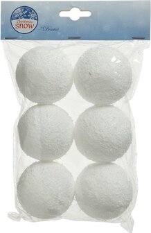 Decoris Kunstsneeuw 6x witte sneeuwballen 6 cm - sneeuw decoratie - Sneeuwbollen
