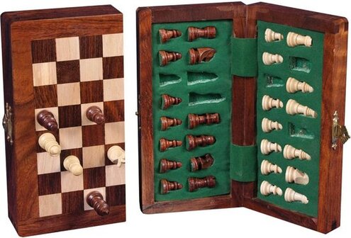 Schaakset magnetisch/ opklapbaar, 15x30 cm, acacia hout