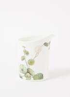 Avarua melkkannetje van het merk Villeroy & Boch. Dit item is vervaardigd uit fine bone-porselein en is gedecoreerd met een donkergroen en goudkleurig bladermotief.  De items uit de Avarua collectie zijn geïnspireerd op de reis van zeevaarder en ontdekkingsreiziger James Cook. De paradijselijke look is voorzien van fijne gouden lijnen die een driedimensionaal effect oproepen. De collectie bevat botanische motieven en zachte kleuren die doen denken aan paradijselijke oorden zoals de Cookeilanden.