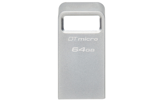 DataTraveler® Micro is een ultrakleine, lichtgewicht USB-stick, ideaal voor handige plug-and-stay-opslag die compatibel is met computers, printers, gameconsoles en meer. De drive is ontworpen met een onopvallende, premium metalen behuizing en ingebouwde sleutellus om zonder interferentie in USB-poorten te laten. DT Micro levert USB 3.2 Gen 1-snelheden tot 200MB/s lezen* en een capaciteit tot 256GB** om snel grote bestanden, zoals films, muziek, games en foto's, over te dragen en op te slaan.