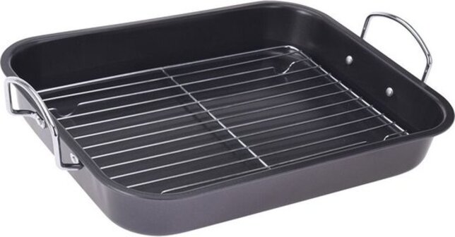 Excellent Houseware Anti-aanbak braadslede - Vierkant - Met rooster - Zwart/RVS