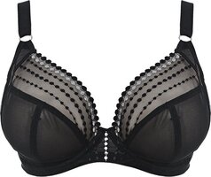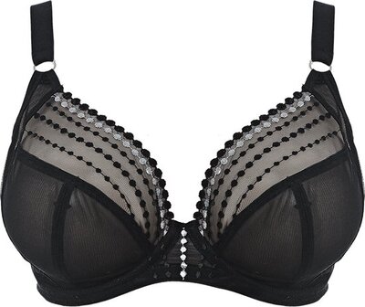 De Elomi Matilda Plunge BH is uitermate geschikt voor de curvy dames, de bh is zo ontworpen dat het elke ronding van het lichaam op de juiste manier ondersteunt. Bij een verleidelijk decolleté past de Matilda waarvan de cups dieper zijn uitgesneden. Het transparante kant met parels in het zwart tonen je volle borsten sexy maar toch delicaat. Door de beugels en driedelige cups met sidesupport biedt dit model stevigheid. Zodat je borsten worden opgetild en geaccentueerd.