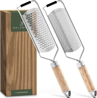 WALDWERK Kaasrasp (2 set) Rasp zester met houten handvat - roestvrij staal - Citroenrasp